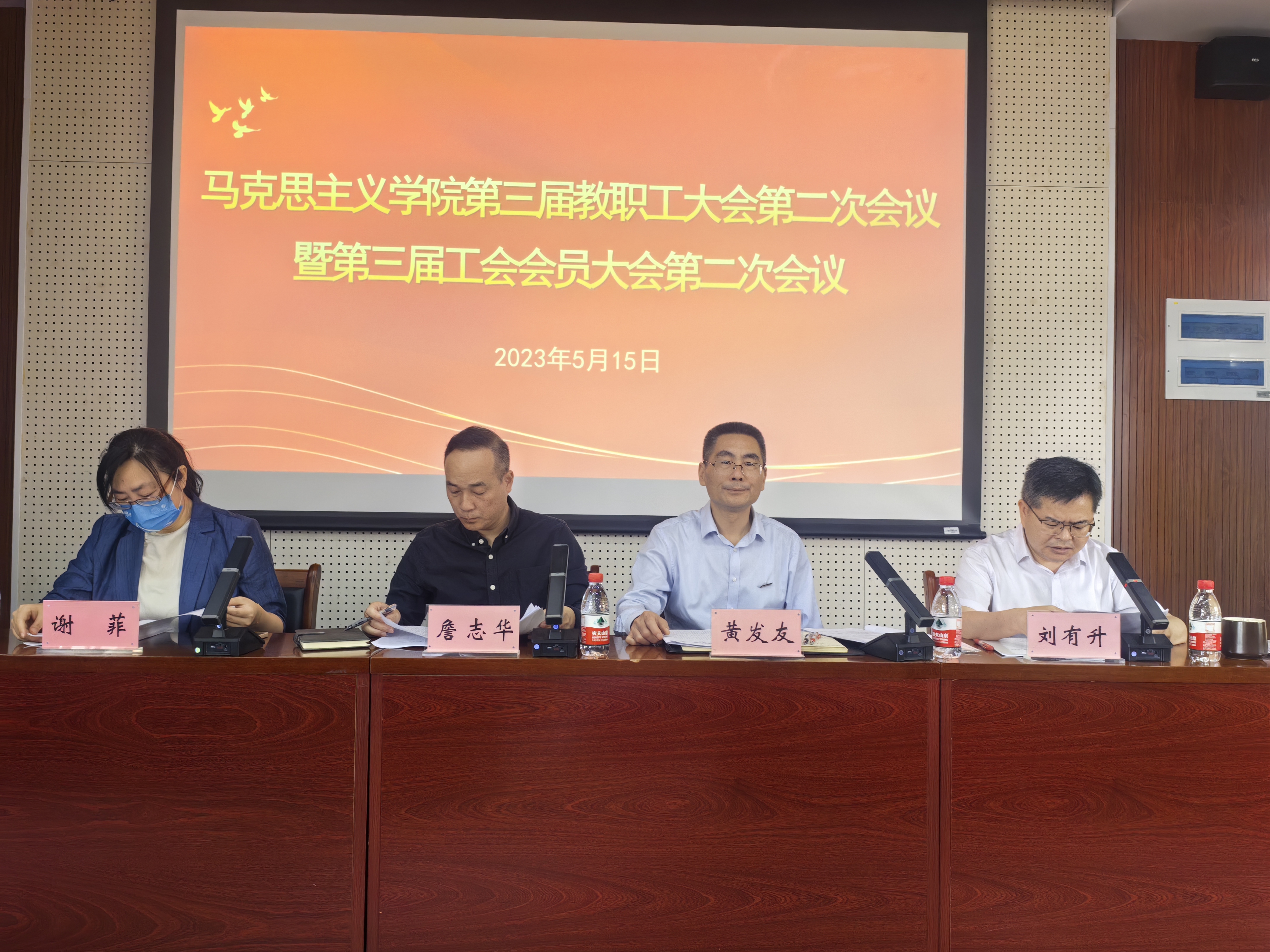 5月15日上午,德赢官网召开三届二次教代会暨三届二次工代会,学院党委书记黄发友教授、院长詹志华教授、副院长刘有升教授、工会主席谢菲教授及全院教职工共49人参加会议。会议由副院长刘有升主持,院党委书记黄发友致开幕词。