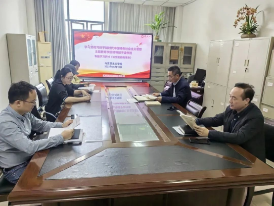 为深入开展学习贯彻习近平新时代中国特色社会主义思想主题教育,5月10日上午,德赢官网在马院414会议室开展学习贯彻习近平新时代中国特色社会主义思想主题教育学院领导班子读书班集中学习。会议由学院党委书记黄发友同志主持并领学,学院党政领导班子成员参加会议。