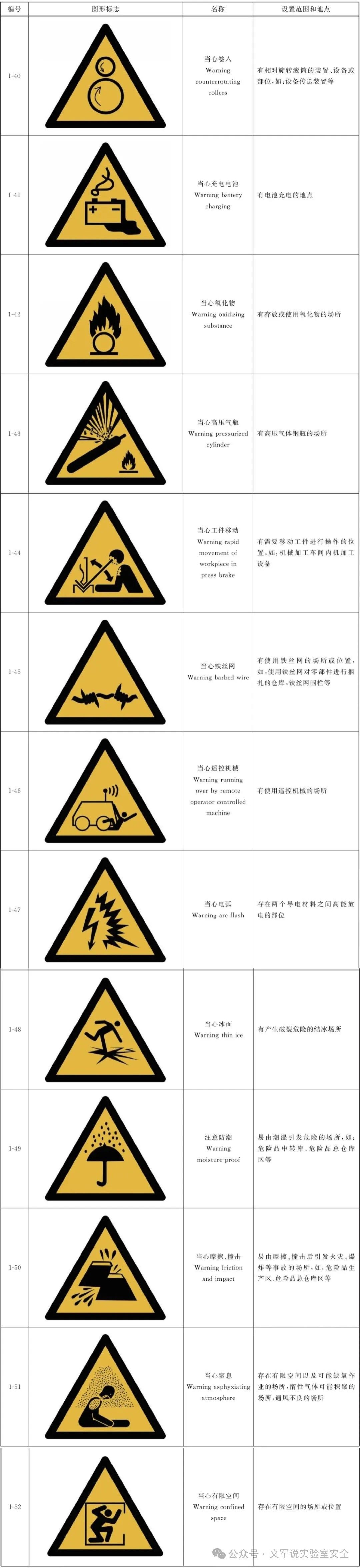 安全标志可以快速、准确地引起人们的注意并传达关键信息。实验室里的安全标志就像沉默的哨兵,提醒实验人员要预防危险,从而避免事故发生;当危险发生时,根据指示尽快逃离,或者根据指示采取正确、有效、得力的措施,对危害加以遏制。