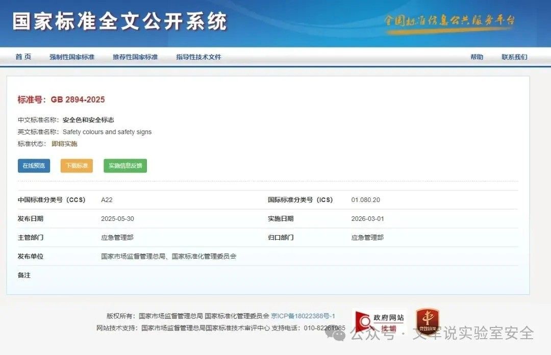 根据全国标准信息公共服务平台相关信息页面,国家强制性标准GB 2894-2025《安全色和安全标志》已在2025年5月30日发布,将于2026年3月1日开始实施,代替GB 2893-2008《安全色》和GB 2894-2008《安全标志及其使用导则》。我们一起来看一下新标准主要有哪些变化。