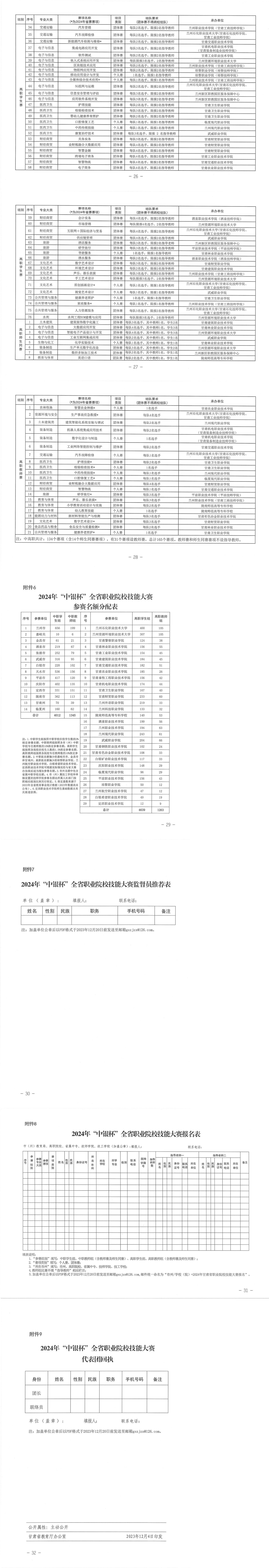 甘肃省教育厅等6部门关于举办2024年“中银杯”全省职业院校技能大赛的通知