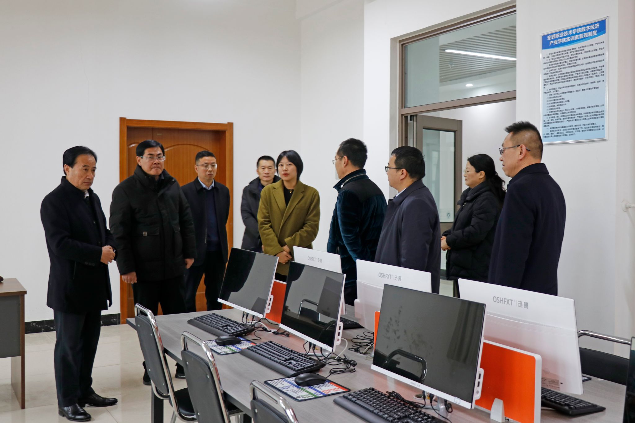 马小兵、马晓晖一行实地参观了学校数字经济产业学院、职业教育体验中心、实验实训室、学生公寓、学生食堂等,详细了解了学校办学情况。