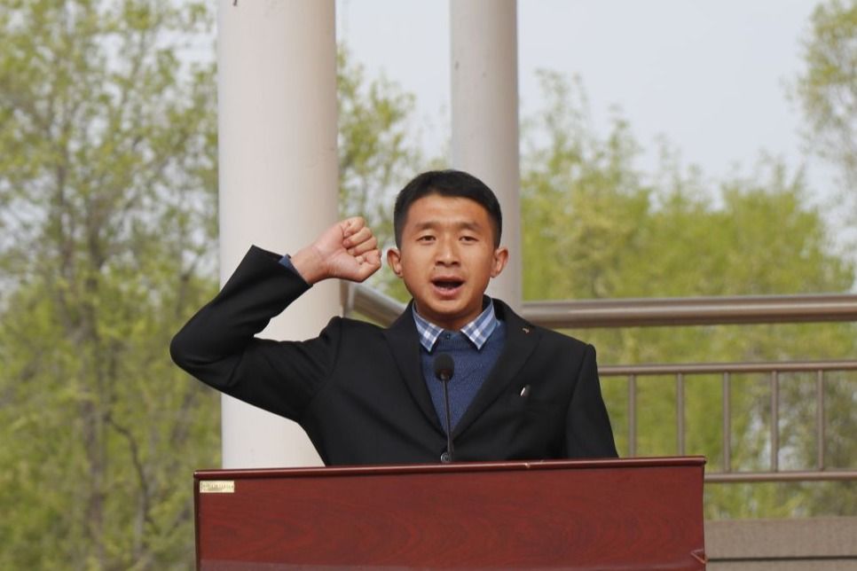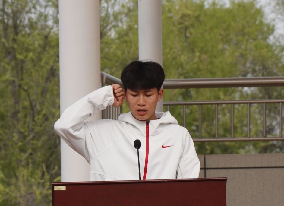运动员代表、畜牧兽医学院学生王海龙宣誓。