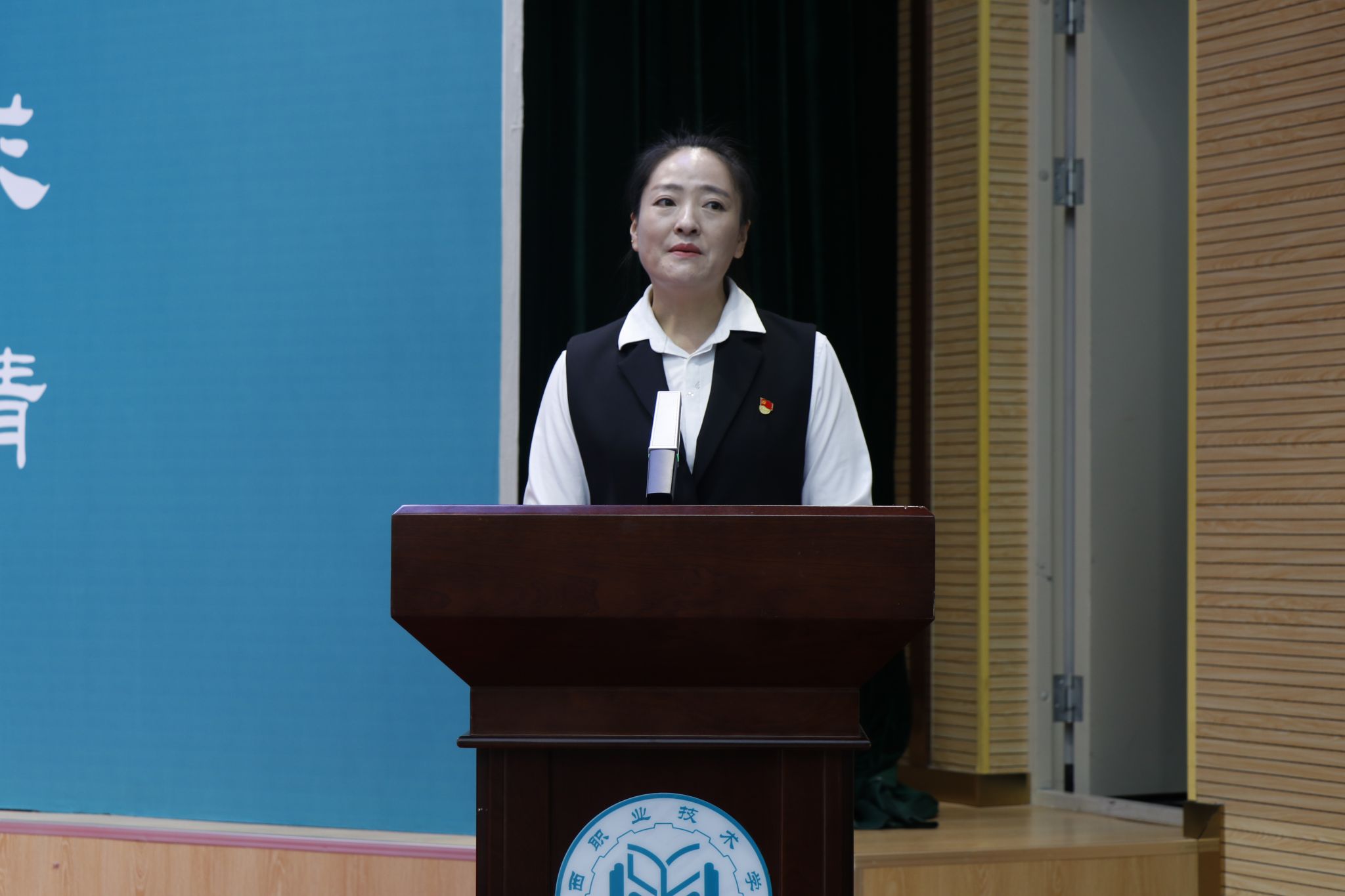 温睿婷作为教师代表发言:“作为师长有幸陪伴并见证着大家成长路上的意气风发与百折不挠。这四年,同学们努力钻研学业的精神,也让老师们感受到了为人师者的成就和自豪!希望同学们牢记师长的教诲和嘱托,在人生的新征程中,踏浪前行,勇敢追梦。”