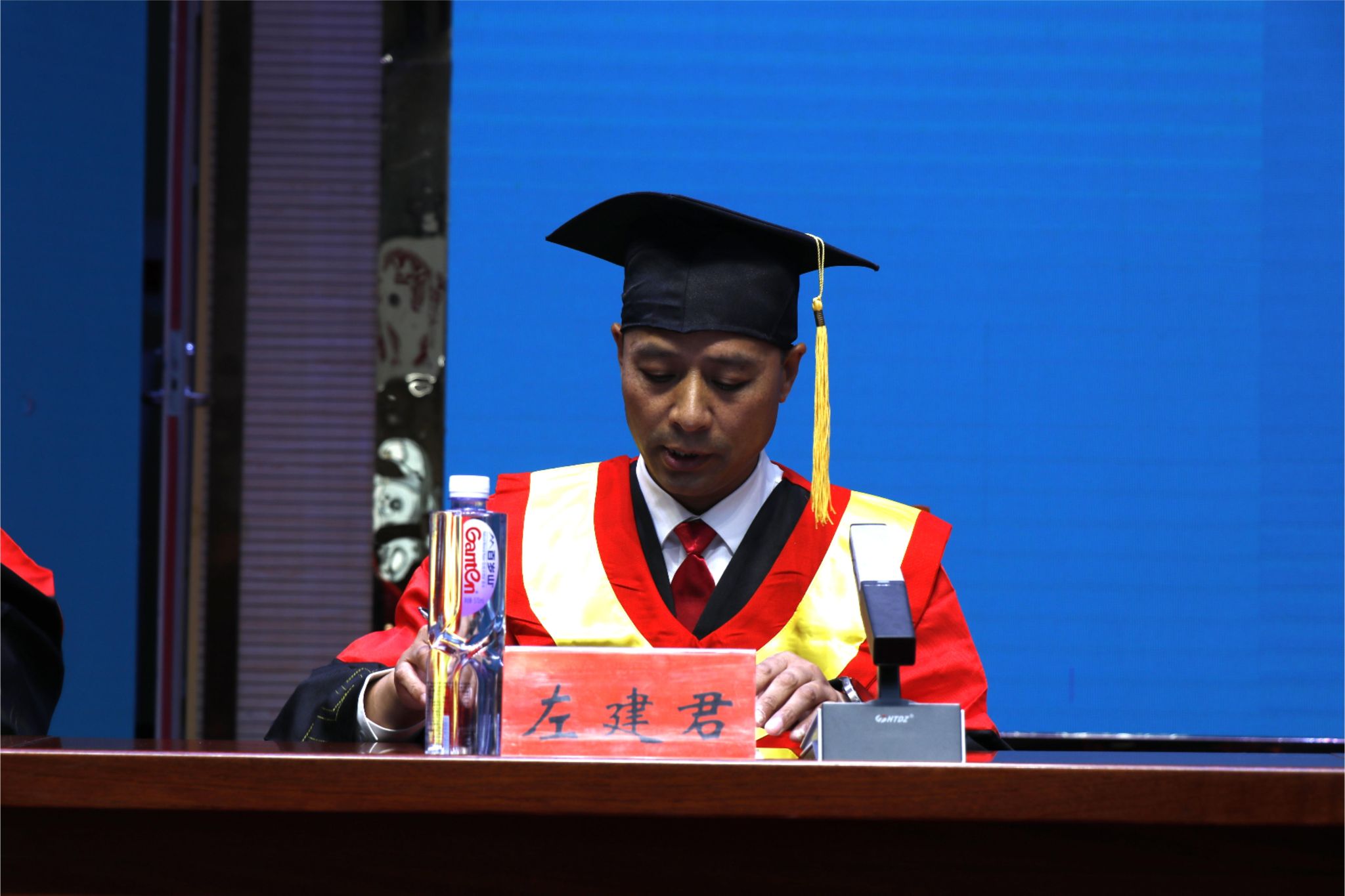 毕业典礼在激昂庄严的国歌声中拉开帷幕。
