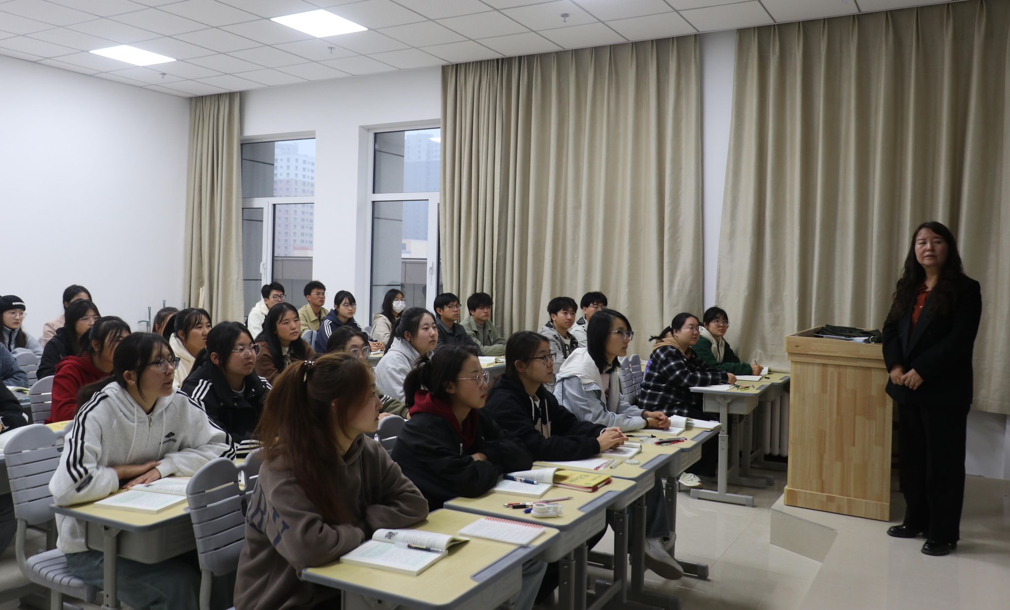 开展新生入学集中听课,不仅是对新同学的一次热烈欢迎,更是对新学期教育教学工作的一次全面检阅。课堂上,教师神采飞扬,学生热情高涨,课堂气氛活跃、秩序井然,展现出新学期良好的面貌。领导干部与新生一起认真聆听教学内容,对教学情况进行细致的记录、评价,全面了解大一新生的精神面貌和教师的授课情况。
