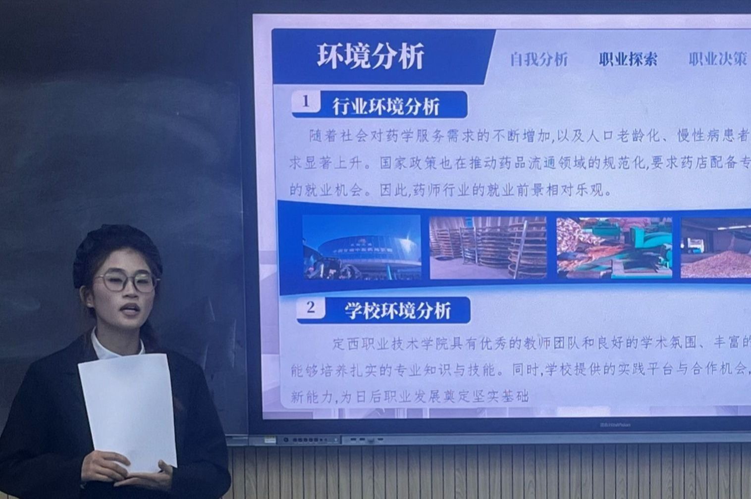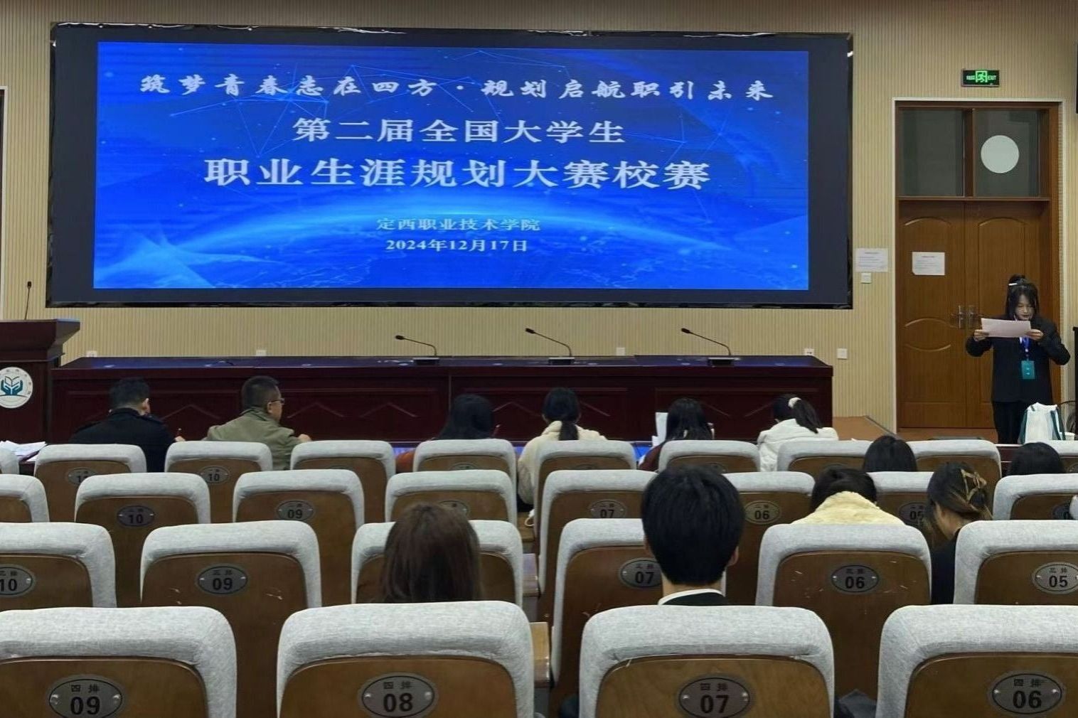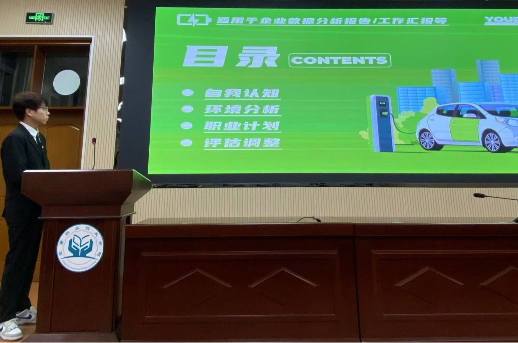 比赛期间,选手们依次登台展示。他们运用精美的 PPT,结合自身专业、兴趣爱好、优势特长等多方面因素,对自我进行了深度剖析,并详细阐述了对目标职业的认知、职业发展路径的规划以及具体的实施计划。