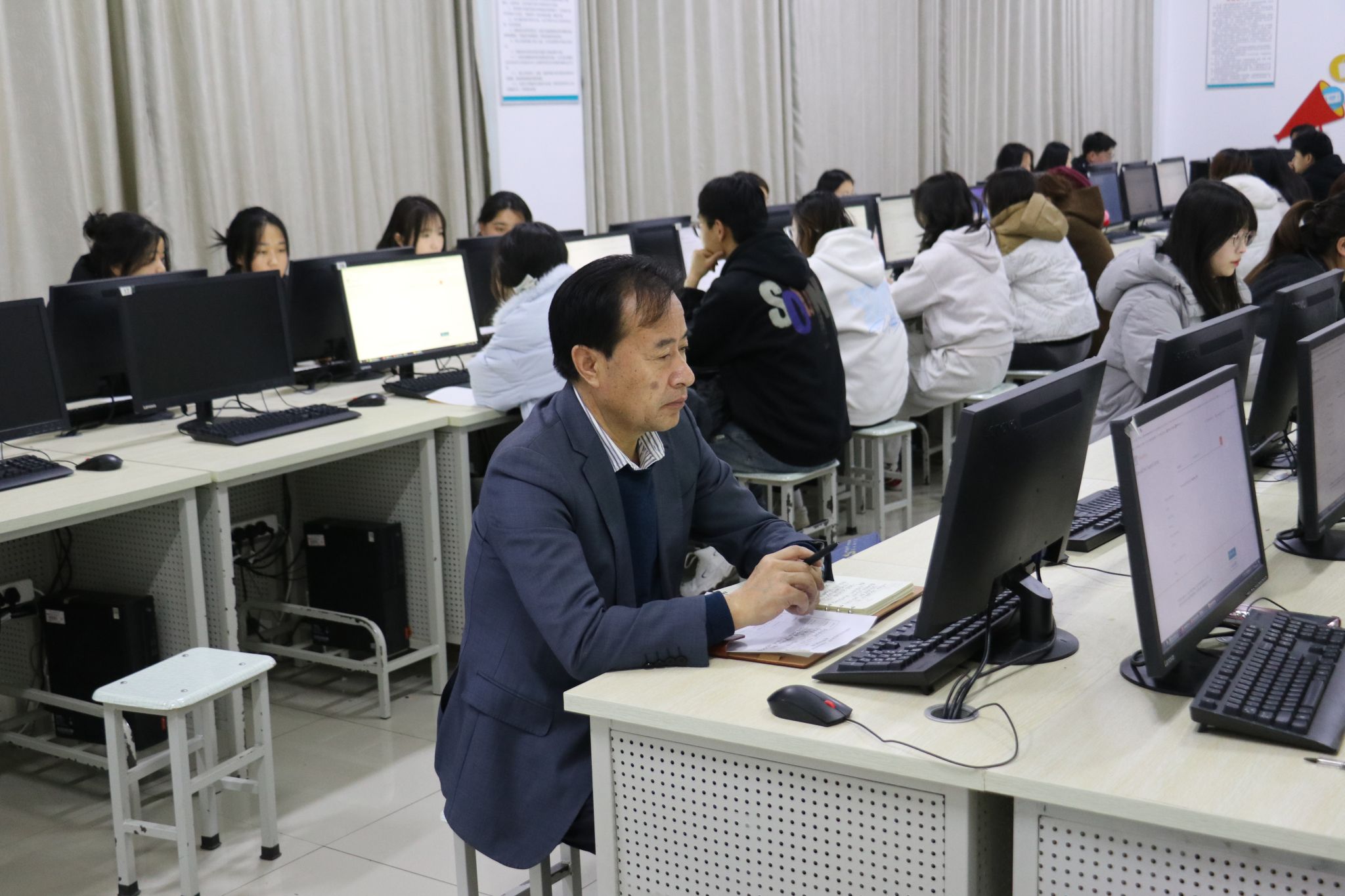 当日,校园里洋溢着蓬勃的朝气。铃声响起,老师们纷纷走进不同年级、不同学科的教室。课堂上,授课教师们准备充分,教学方法多样,思政融入自然有效;同学们认真听讲,积极互动,课堂教学有序进行。