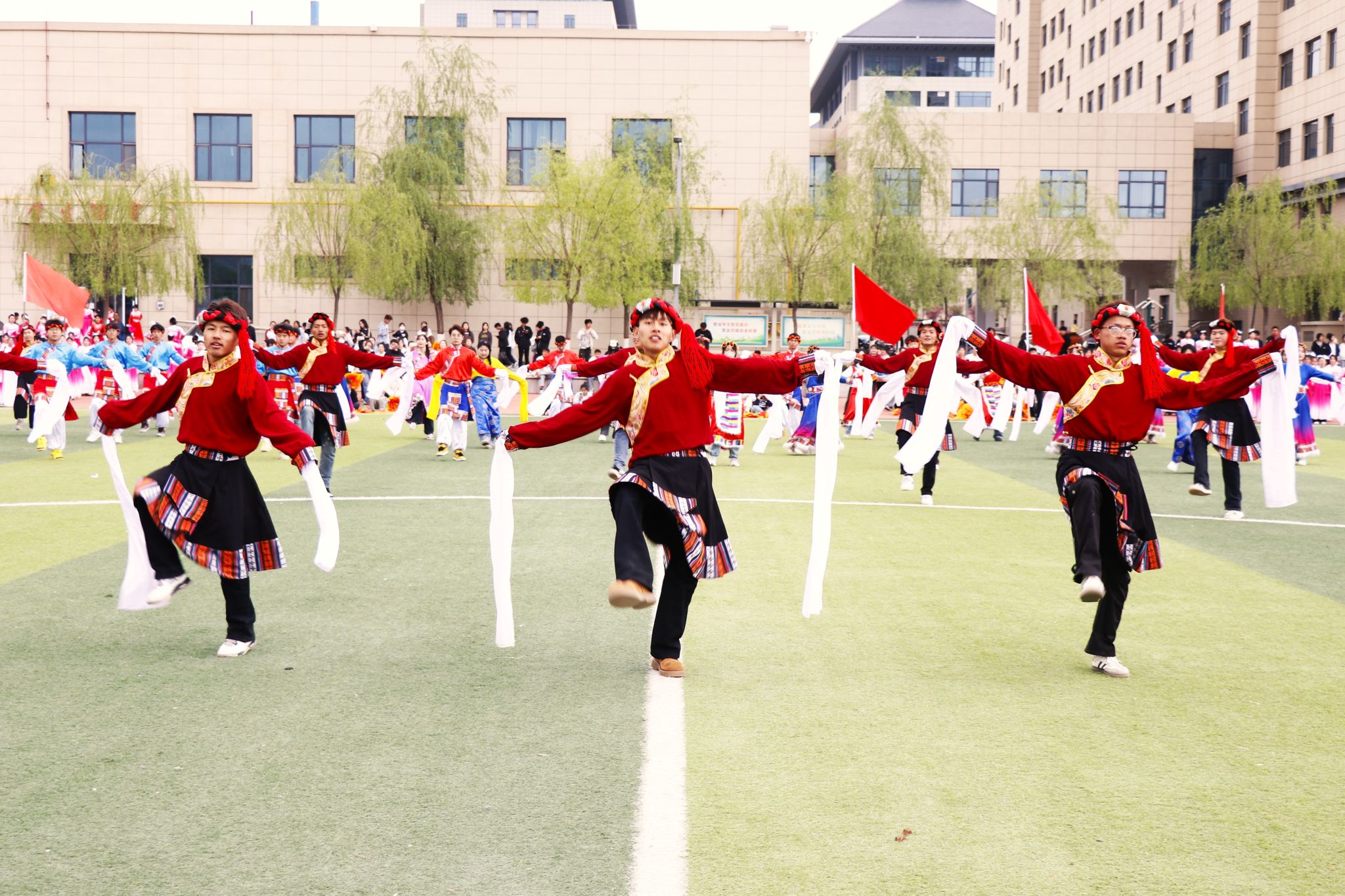 这支由各民族同学共同演绎的锅庄,不仅是肢体艺术的交融,更是中华民族共同体意识最生动的诠释——五十六个民族血脉相连,在同心共筑中国梦的征程中携手前行,绽放出绚丽夺目的团结之花。