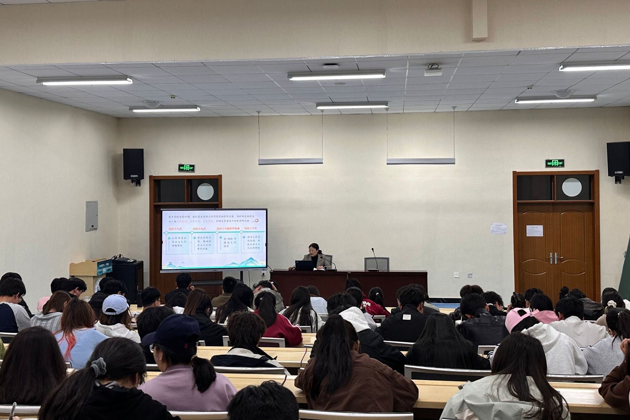 近日,学院党委副书记薛小琴以“加快建设社会主义文化强国”为主题,在会议中心2号报告厅为园艺221班、231班的学子们讲授了一堂内容丰富、生动鲜活的思政课。
