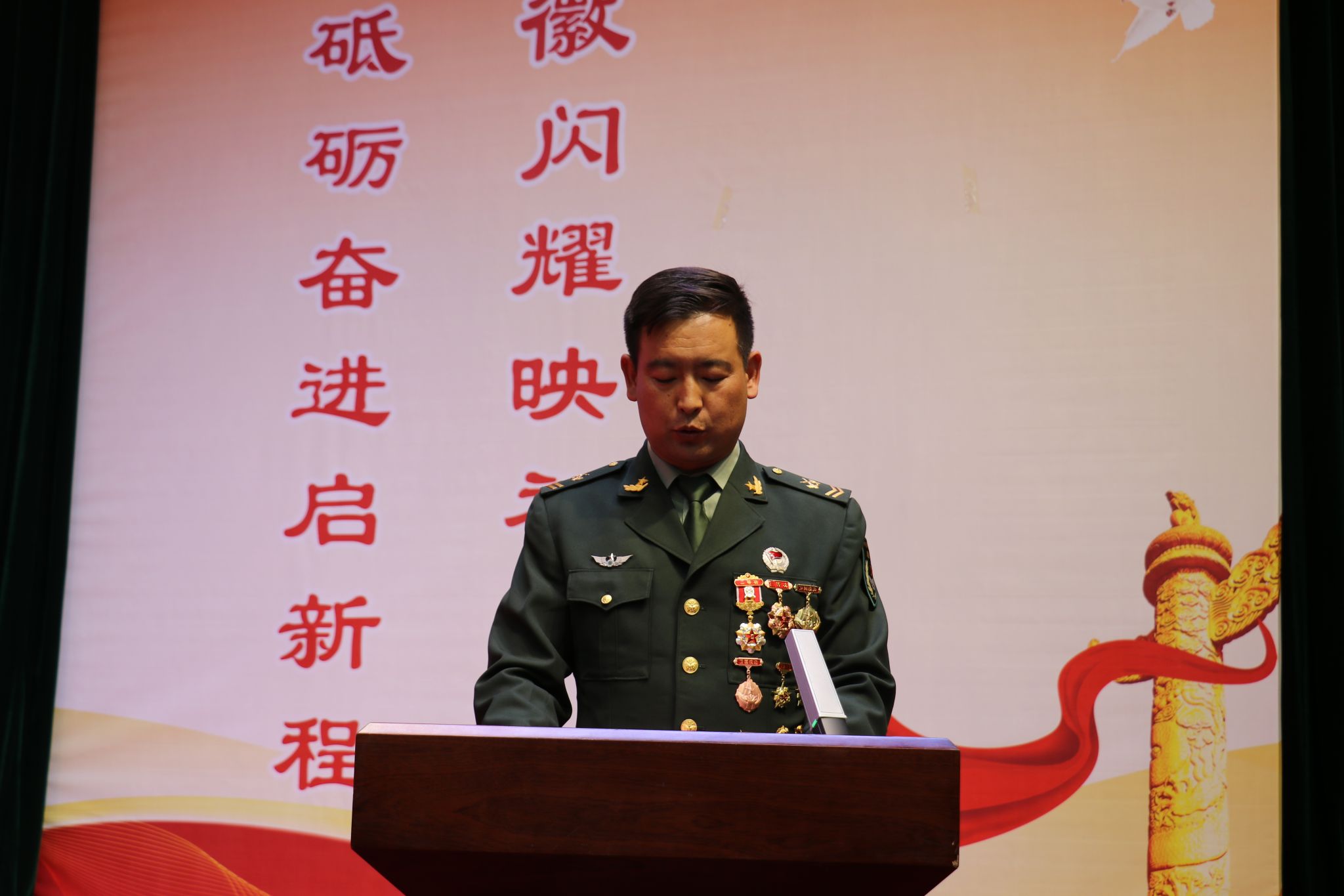 退退役军人漆虎生、彭小龙、王永庆三位同志依次登台,结合自身从军经历和成长历程,讲述了军营生活的淬炼、战友间的情谊以及退役后在地方建设中延续军人本色的生动故事,展现了当代军人忠诚、担当、奉献的优秀品质。