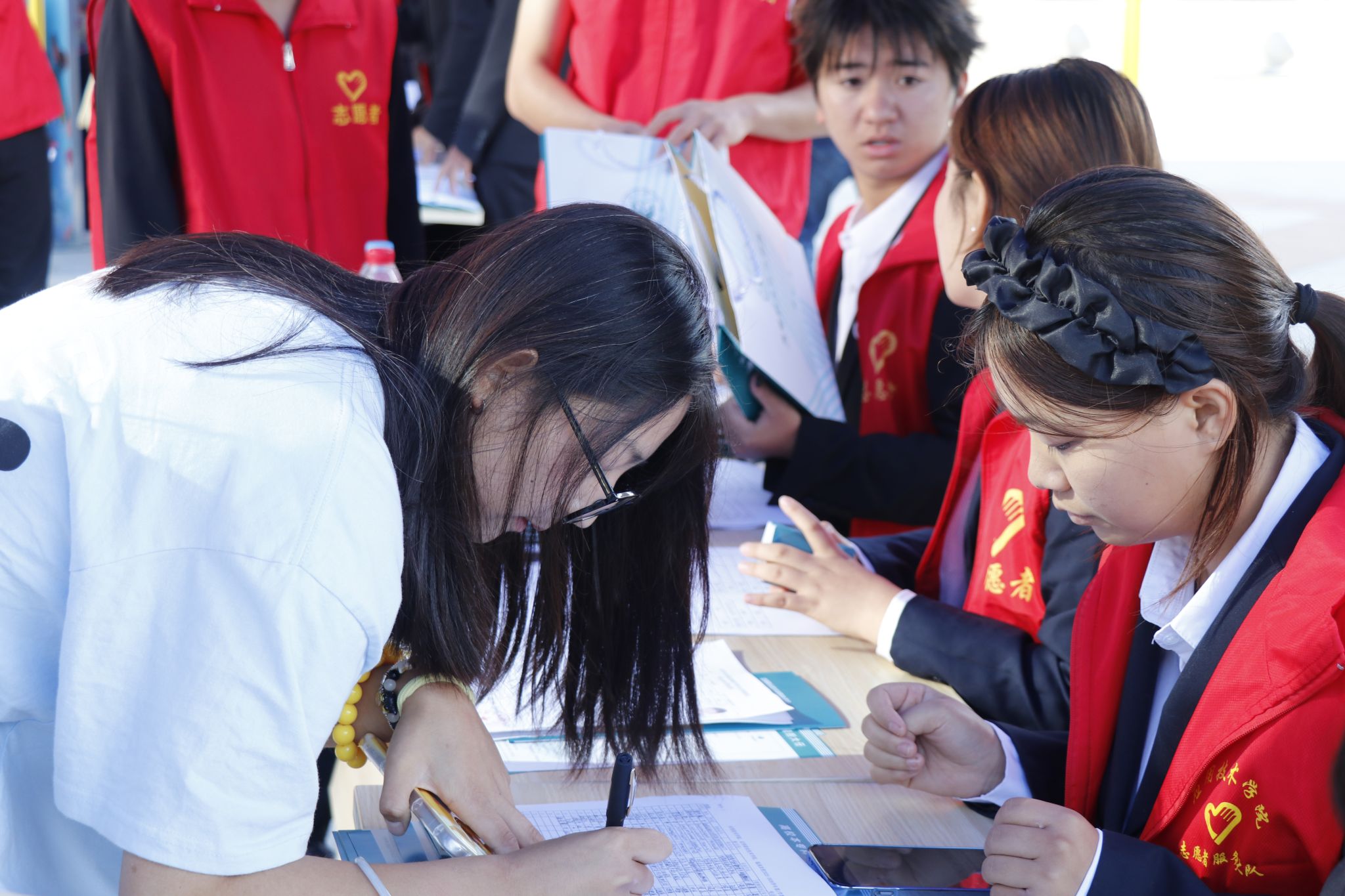 协助新生们完成报到手续