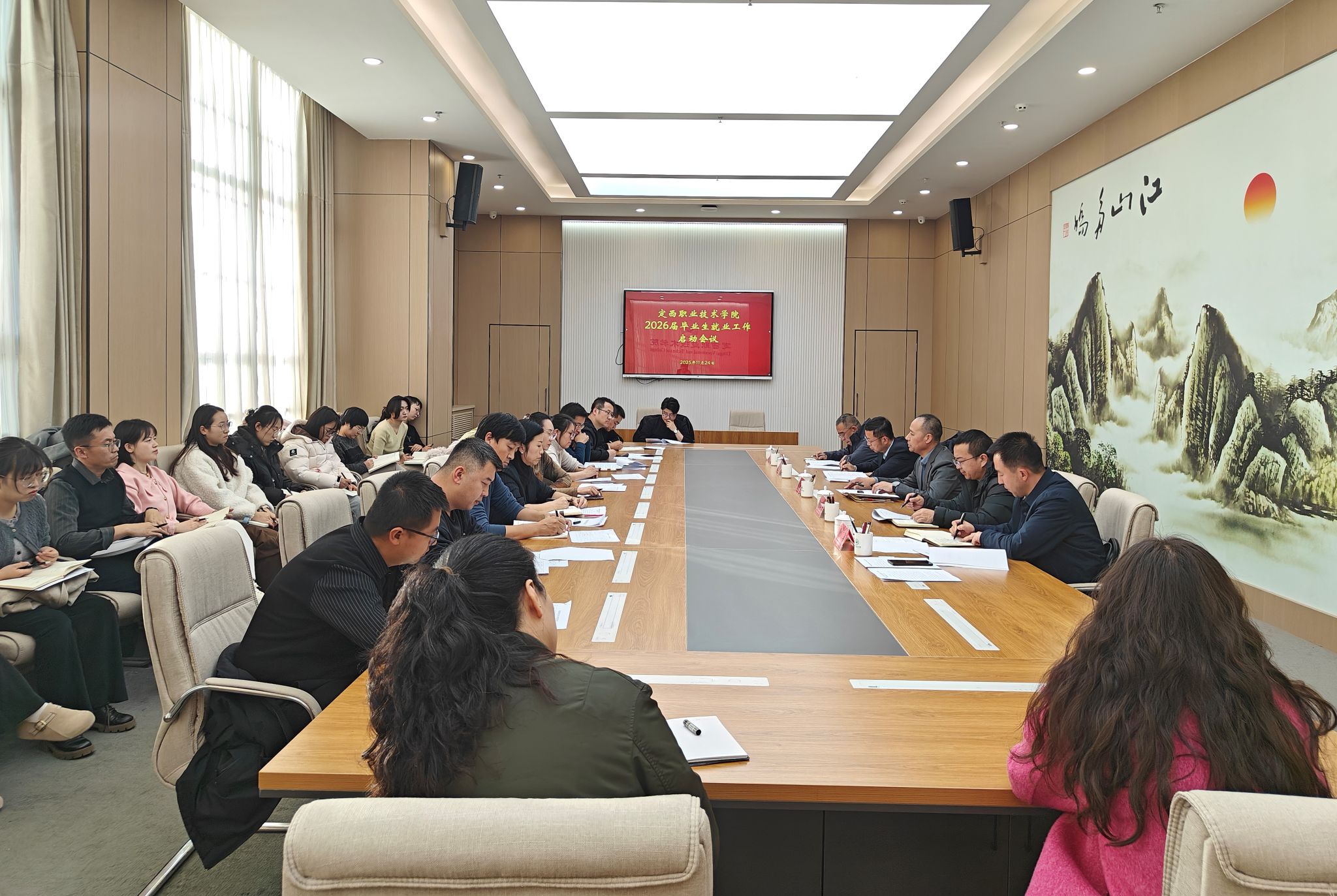 11月24日下午,2026届毕业生就业工作启动会顺利召开。学院领导、教务处、学生工作处负责人,各二级学院党支部书记、院长、就业辅导员及招生就业处全体人员参加会议。会议由副院长仲军主持。