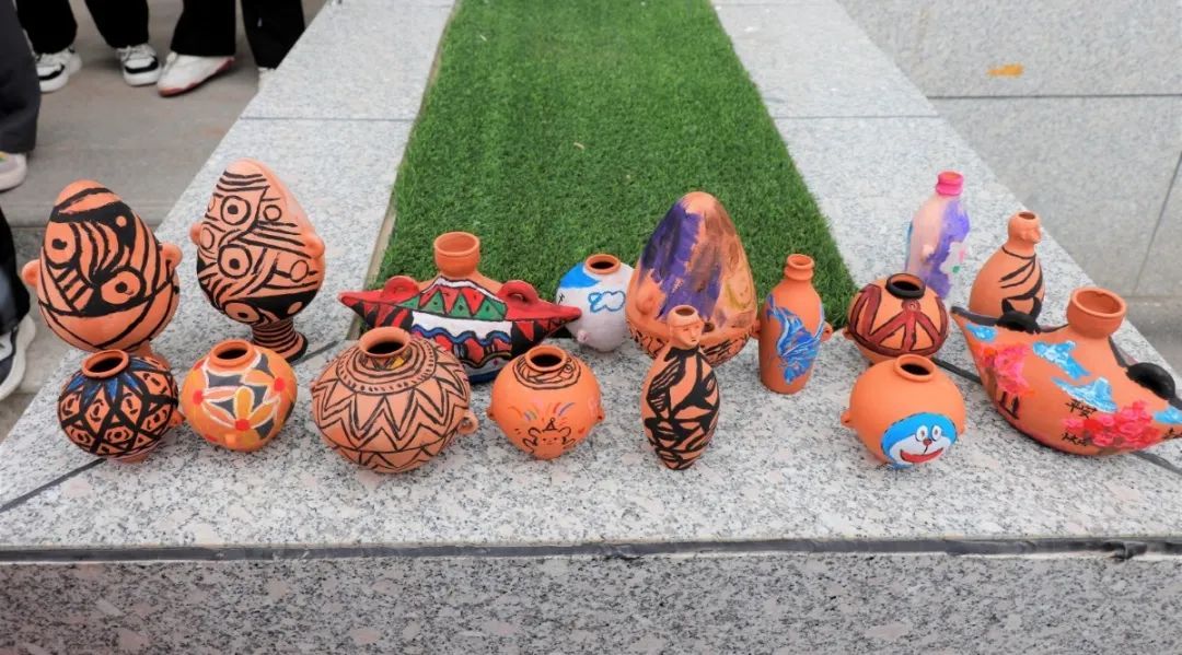 接着进行了“陶韵千年·又见马家窑”——彩陶绘制活动。现场师生在博物馆工作人员的指导下亲手绘制彩陶。瞧,一只只画笔绘出“五彩斑斓”,一双双巧手成就“璀璨灵动”,一件件作品创造“彩绘世界”。