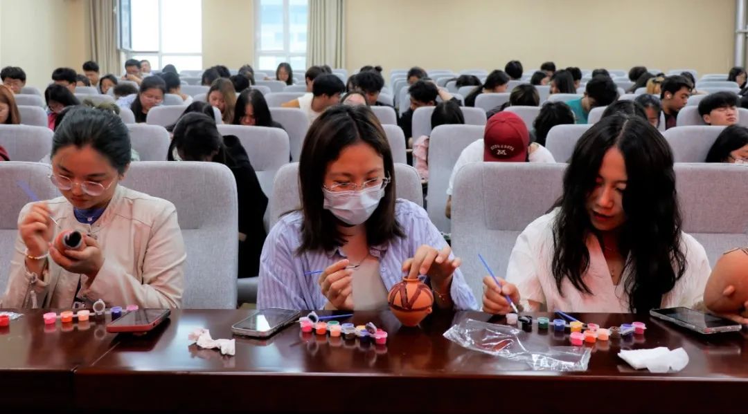 仪式结束后,蔡彦斌从彩陶的历史、器型、纹饰、用途等方面介绍了 “马家窑文化”,使青年学生身临其境地认识到彩陶文化中所蕴含的感情色彩和象征意义,以及中华祖先创造的深厚彩陶文化底蕴。