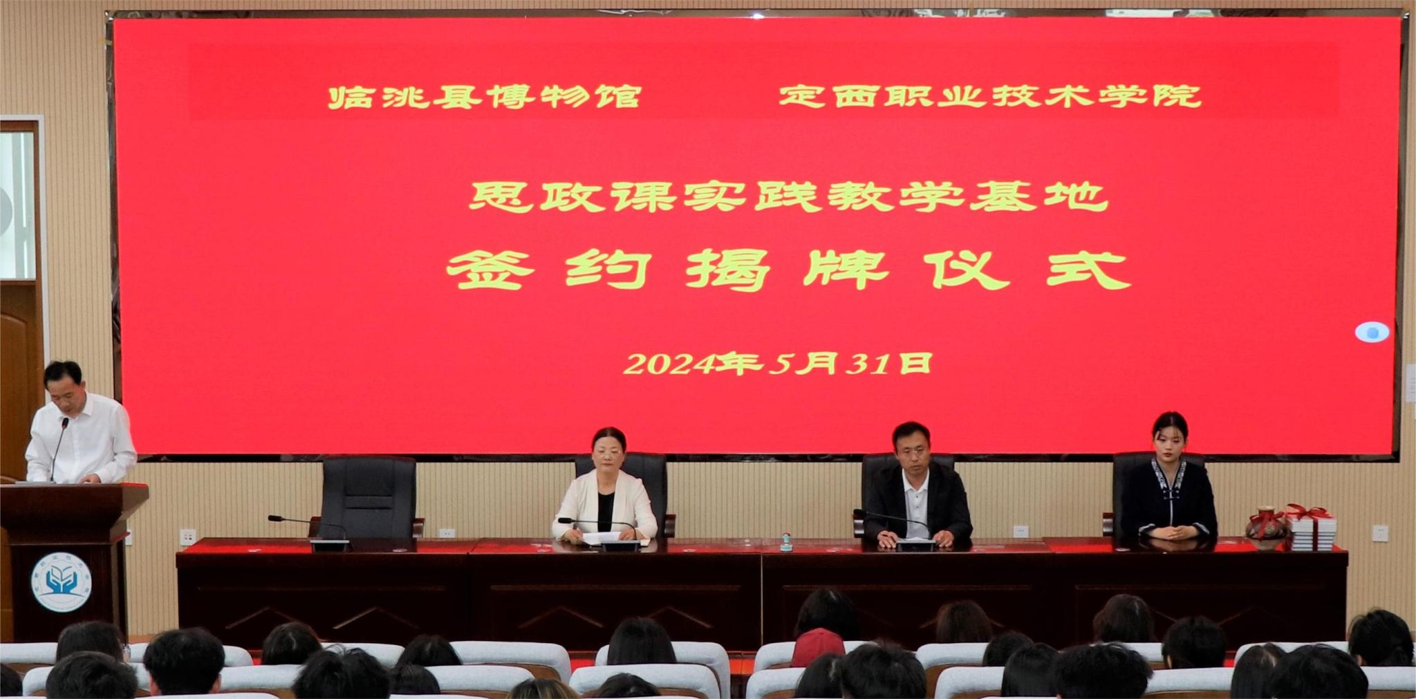 为贯彻落实习近平总书记对学校思政课建设重要指示精神,更好传承中华优秀传统文化,不断丰富、拓展学校思政教育教学形式和内涵,进一步提升思政教育教学效果,5月31日下午,校馆共建思政课实践教学基地签约暨揭牌仪式在学校图书馆3号报告厅举行。学校党委副书记薛小琴,临洮县博物馆副馆长蔡彦斌,临洮县博物馆社教部主任成奕葶出席,临洮县博物馆工作人员、马克思主义教学部教师代表、本科高职学生代表共100余人参加。仪式由马克思主义教学部主任许友强主持。